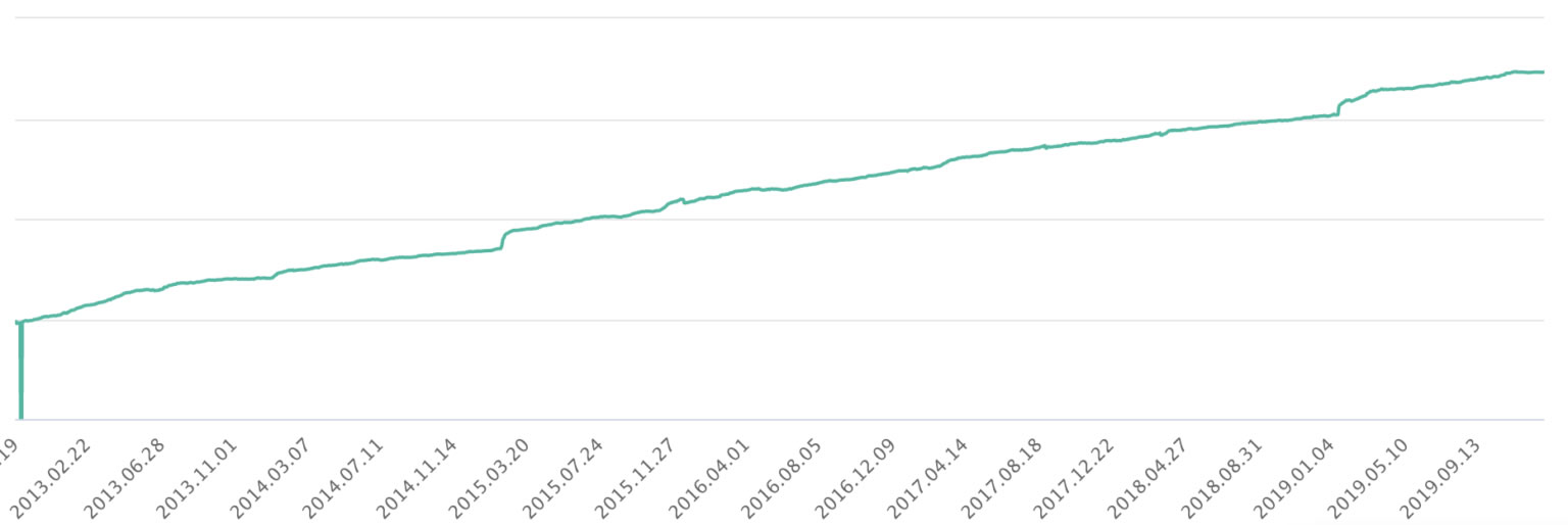 Spodaj je pripet graf, ki prikazuje število naročnikov na moj blog od leta 2013 do 2020 (dejansko sem začel blog pisati že leta 2009):